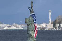 The American flag draped over a tiny statue of Liberty located in West Seattle the day it was announced Biden won the 2020 election. For about a week things felt kind of normal in the United States.