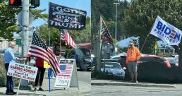 Every weekend in Anacortes, Washington Trump and Biden voters gather on seperate street corners and yell at each other with giant flags.