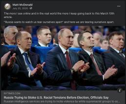 I personally tried to remnd people we were being divided by foreign advisories. At least 40% of my audience dismissed it. Some even said horrible things to me.
